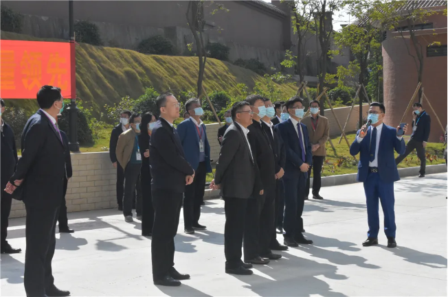 彭主席向領(lǐng)導(dǎo)嘉賓詳細(xì)介紹衍生產(chǎn)品的生產(chǎn)流程