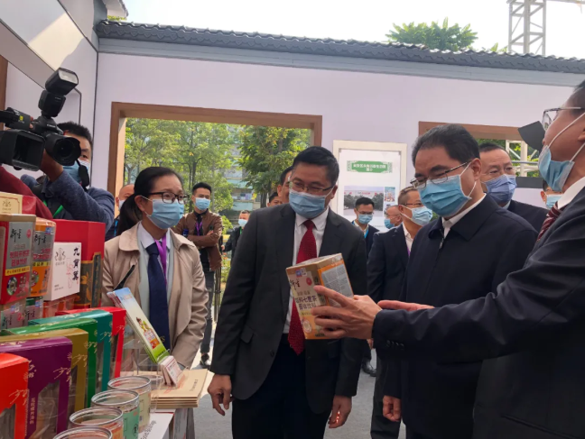 中國(guó)工程院院士,中國(guó)中醫(yī)科學(xué)院院長(zhǎng)黃璐琦,廣東省委常委葉貞琴,省農(nóng)業(yè)農(nóng)村廳黨組成員、副廳長(zhǎng)馮彤等省領(lǐng)導(dǎo)蒞臨衍生健康醫(yī)藥展館參觀指導(dǎo)
