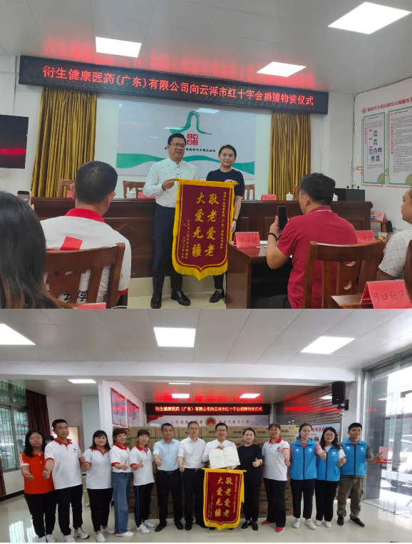 交接儀式上,衍生集團(tuán)董事局主席彭少衍先生將捐贈(zèng)物資支票交接給云浮市紅十字會(huì)和河口街道辦代表。云浮市云城區(qū)河口街道辦回贈(zèng)“敬老愛(ài)老大愛(ài)無(wú)疆”錦旗,云浮市紅十字會(huì)回贈(zèng)榮譽(yù)證書(shū)。